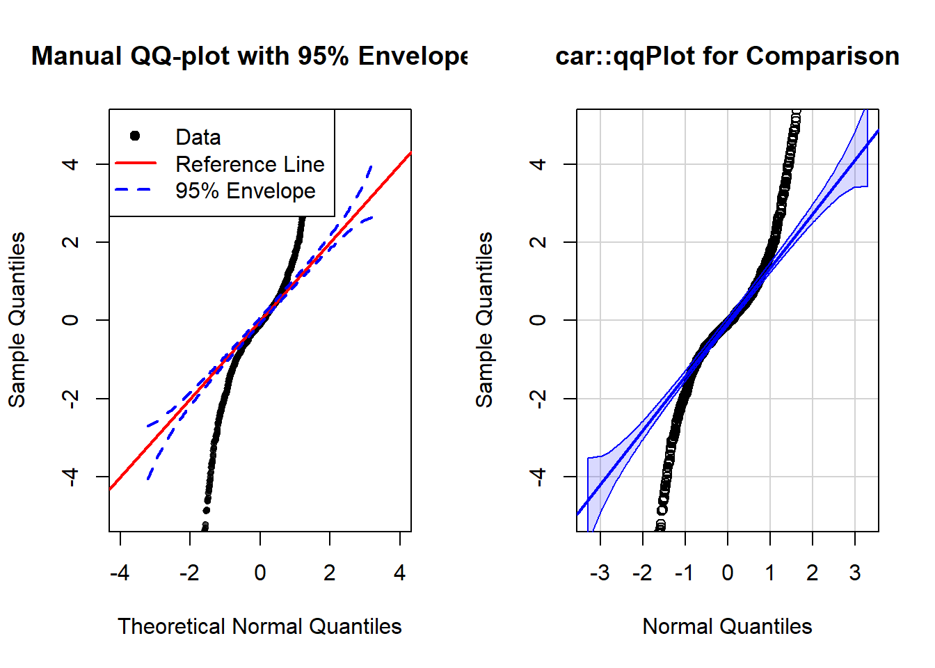 main = "car::qqPlot for Comparison",